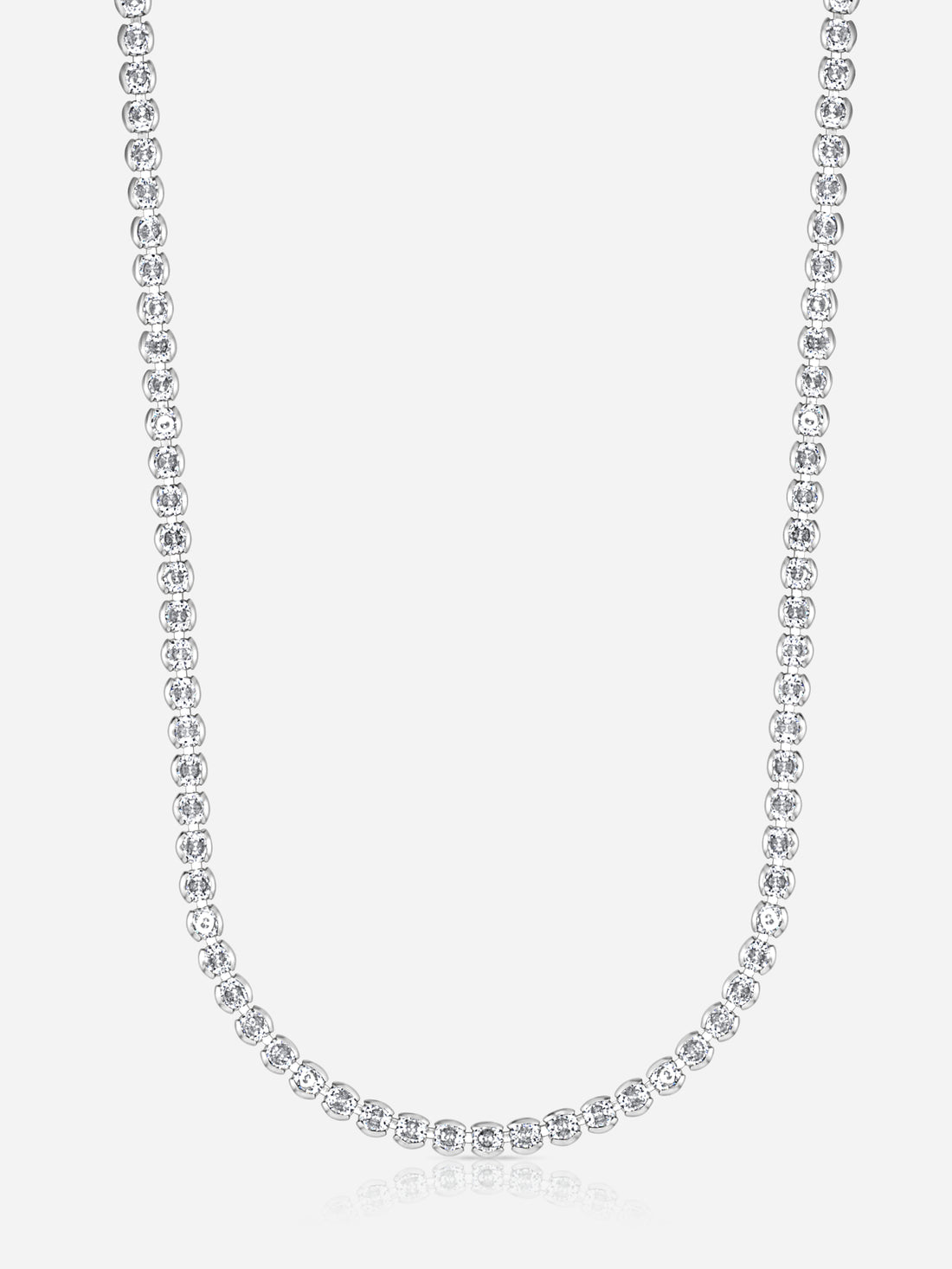 This tennis necklace is a fresh take on a classic, with each stone cradled in...