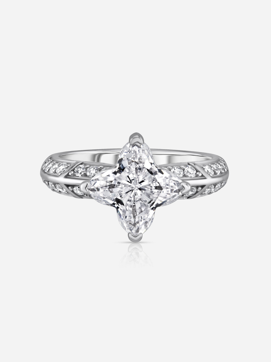 A distinctive star-shaped stone takes center stage, with pavé accents adding just the right amount...