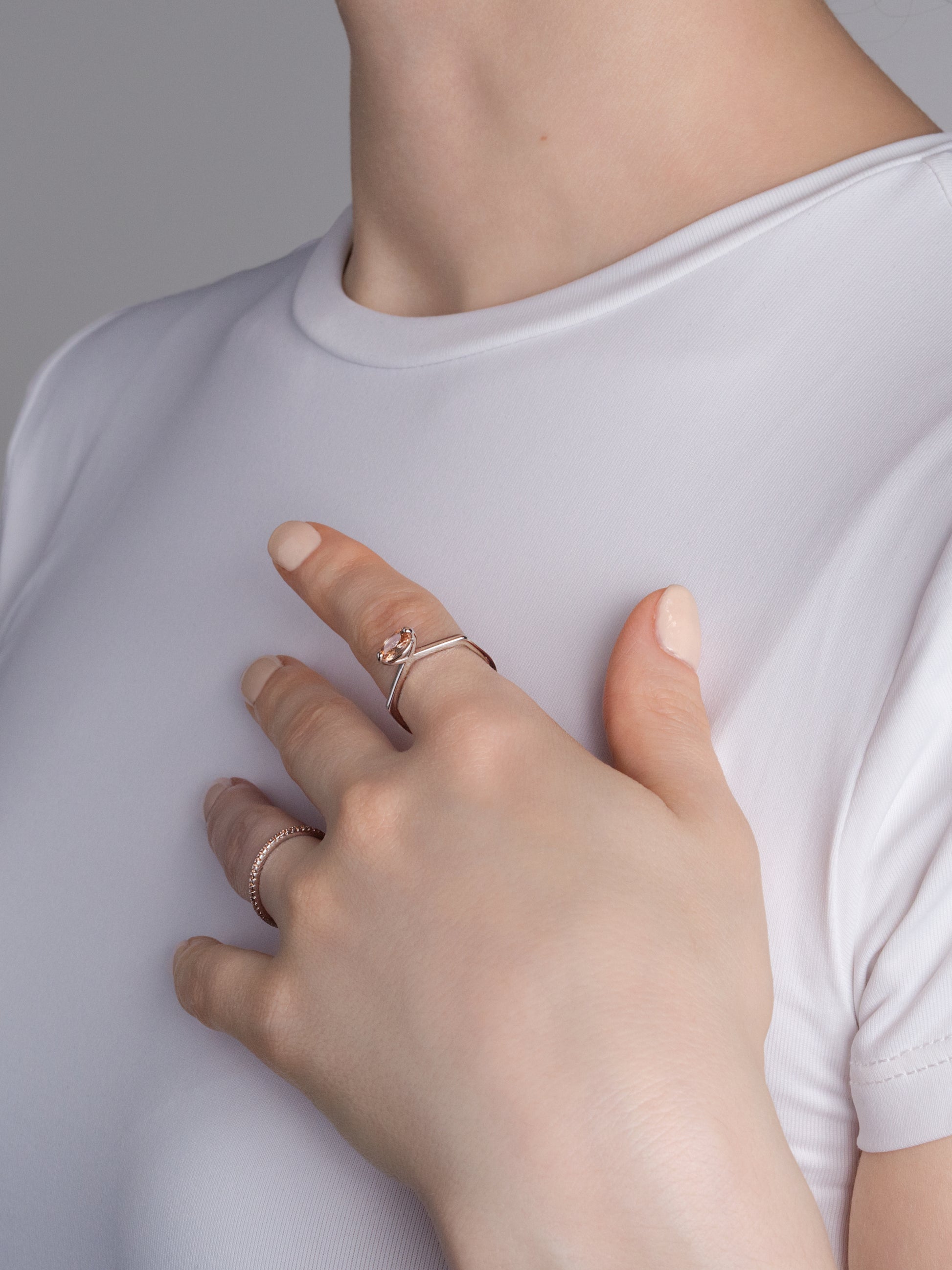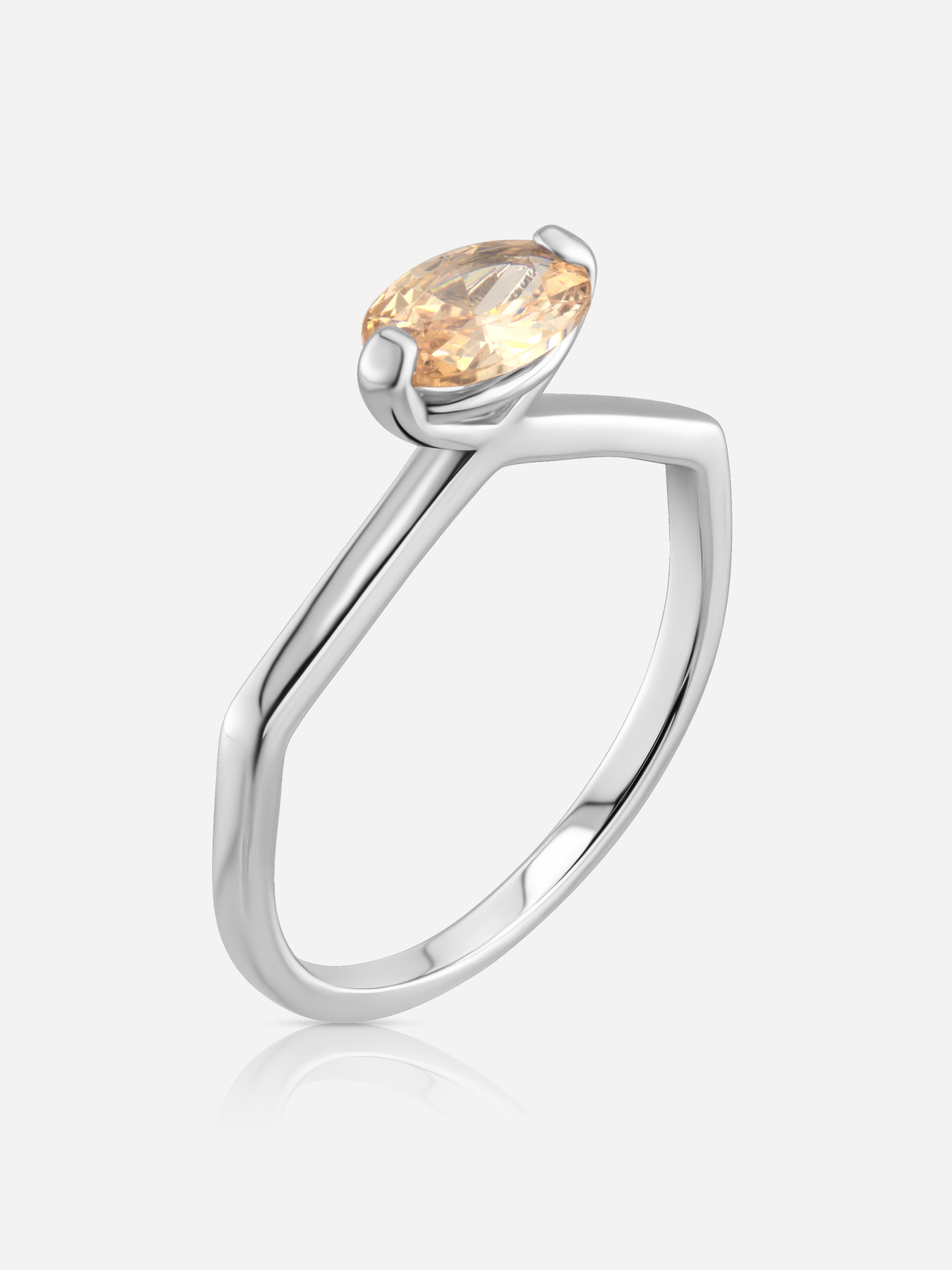 Geometric Champagne Solitaire Ring